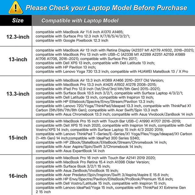 External dimensions: 14.17 x 0.79 x 10.63 inches (L x W x H). The front vertical side pocket dimensions: 9.25 x 9.84 inches (L x W). Made with marble polyester material a top opening zipper gliding smoothly and allows convenient access to your device. Slim and lightweight does not bulk your device up and can easily slide into your briefcase backpack or other bag. Extra pocket in front provides enough space to keep mouse earphone pens and notepads offering added convenience. This protective carrying sleeve case cover bag with pocket is ideal for you to take your laptop out. Features a polyester foam padding layer and fluffy fleece fabric lining for bump and shock absorption and protection of your device against dust dirt bump shock and accidental scratches. Compatible with MacBook Pro 14 inch 2023-2021 M3 A2918 A2992 M2 A2779 M1 A2442 Pro Max with Touch ID compatible with MacBook Air 13 inch A1369 A1466 2010-2017 compatible with MacBook Pro 13 inch A1425 A1502 A1278 2008-2015; Compatible with Surface Book 3/2/1 13.5 compatible with Surface Laptop 4/3/2/1 13.5; Compatible with Latitude 14; Compatible with HP Elitebook 13.3 /Spectre X360 13.3 /Envy 13/Stream 13/Stream 14/Pavilion 14; compatible with IdeaPad 13/14.