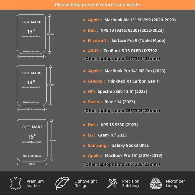 ???????????????????????????????????????????????? &???????????????? Generous 15.2 × 11.2 cavity stores XPS 15 ( bestseller) + charger.? Fits 14- 15.6 laptops |? Excludes 17 & thick models (e. g. Alienware m15) |? Works with legacy (2016 MacBook Pro 15) and modern laptops (Razer Blade 15 MSI Prestige 15).