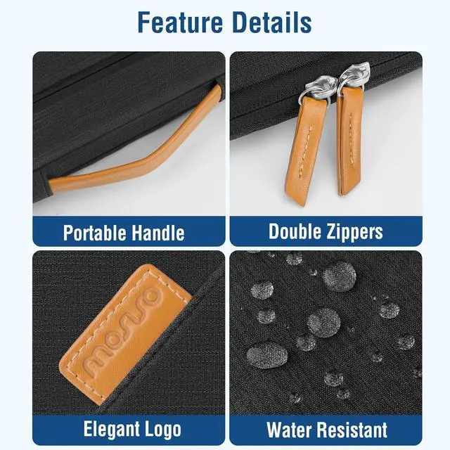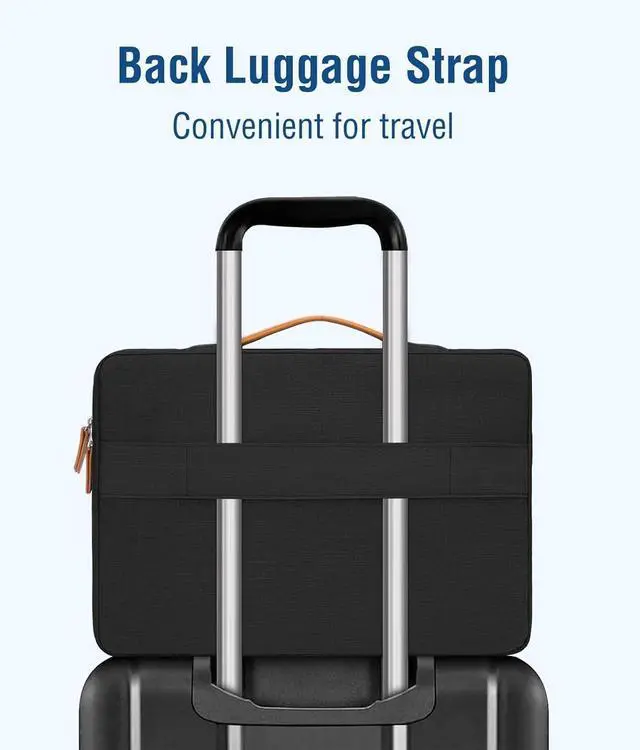 Right vertical zipper pocket dimensions: 4.72 x 4.62 inches (L x W). 360 degree all around protective reinforced interior edge briefcase carrying case bag protect your laptop from any accidental dropping. Extendable handle design makes it to carry your laptop around in comfort you can also tuck away the handle. Side opening zipper design avoid accidental dropping of your laptop while carrying. 4 front zipper pockets provide enough space to keep mouse earphone pens and notepads offering added convenience. The laptop sleeve with 4 front organizer zippers pockets outer polyester fabric of the case enable you to carry your laptop / notebook / Ultrabook computer in a uniquely sleek style. Features a polyester foam padding layer and fluffy cushion for bump and shock absorption and protection of your device against dust dirt bump shock and accidental scratches. Considerate design is the back trolley suitcase belt for ease use during business trip. It is really convenient for your happy journey to any where. Slim and lightweight; does not bulk your laptop up and can easily slide into your briefcase backpack or other bag. This protective carrying sleeve case cover bag with handle and pockets is ideal for you to take your laptop out.