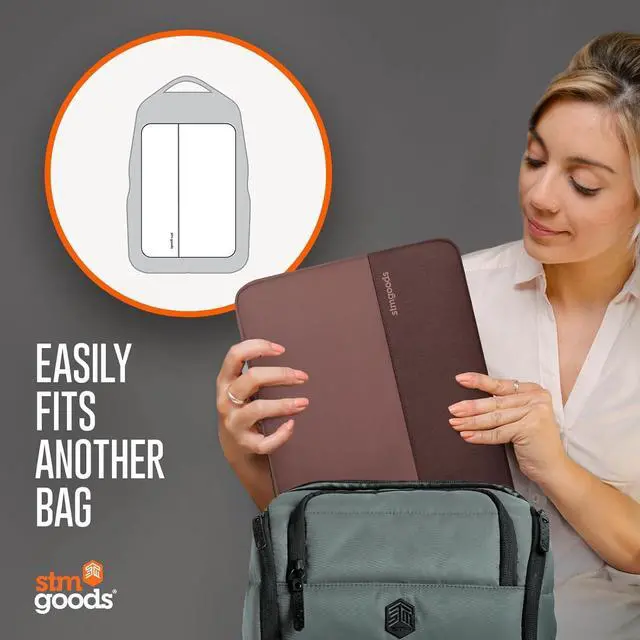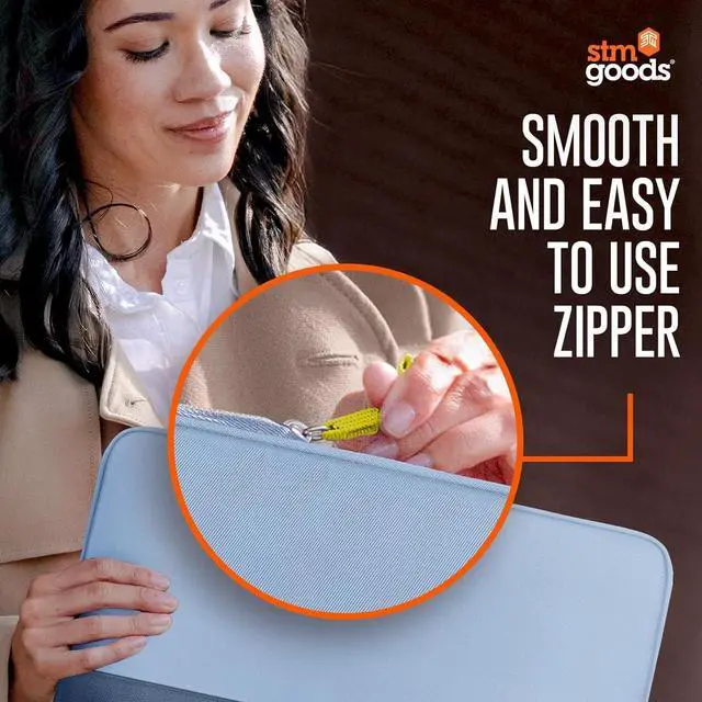 Whether placed in a crowded bag or carried separately this feature adds extra durability to safeguard your tech. Durable Zipper & Effortless AccessThe sleeve features a high-quality webbing zipper pull that provides smooth snag-free opening and closing for easy access to your device. The sturdy zipper design ensures long-lasting durability preventing wear and tear from frequent use while keeping your laptop securely enclosed at all times. Chic & On-Trend Two-Tone Design for Modern Users More than just a protective sleeve the STM Origin Laptop Sleeve is a statement piece. Its fashion-forward two-tone colour combinations make it a stylish companion for professionals students and creatives.