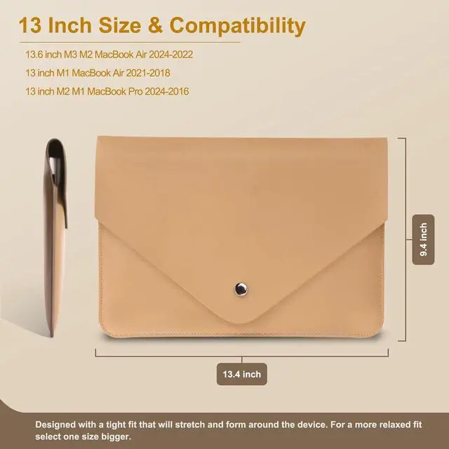 LAPTOP SLEEVE PERFECT SIZEOur Laptop Sleeves are compatible with MacBook Air 13 2018-2021 M1 for MacBook Air 13.6 inch 2024-2022 M3 M2 compatible with MacBook Pro 13 2016-2024 M2 M1 (not suitable for MacBook Pro 13 with a hard case) small pouch bag compatible with XPS 13 for Surface Pro 7/Pro 6/Pro 5/Pro 4/Pro 3 (not suitable for Surface Pro 8 and Surface Pro X). HIGH QUALITY MATERIAL BETTER QUALITYThe laptop case is made of high-quality PU leather material and soft lining the outer layer is waterproof and dustproof and the inner layer is soft which can effectively protect your laptop from unnecessary scratches water coffee and dust and the laptop bag can be used for a long time.
