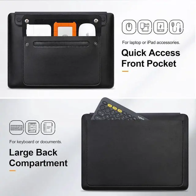 Style Meets Functionality: Slim and lightweight profile despite holding 3+ devices. Elegant envelope-style design in versatile black leather looks professional for both men or women. This All-in-One laptop sleeve will gonna get you never juggle multiple bags again your laptops tablet keyboard and essentials fit sleekly in one laptop sleeve transfer easily from office to campus to flights.