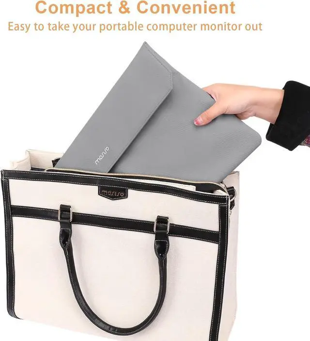 Hook-and-loopfastener fastening closure keeps your laptop securely and prevents monitor from slipping out while allowing easy access. Slim and lightweight does not bulk your device up and can easily slide into your briefcase backpack or other bag. This portable protective computer sleeve case is perfect for women and men for daily use weekend outdoor activities gyms camp business trip travel home school office etc. Extra front pocket at left side provides enough space to keep mouse earphone pens and notepads offering added convenience. This portable computer monitor sleeve bag with pocket is ideal for you to take your portable computer monitor out.