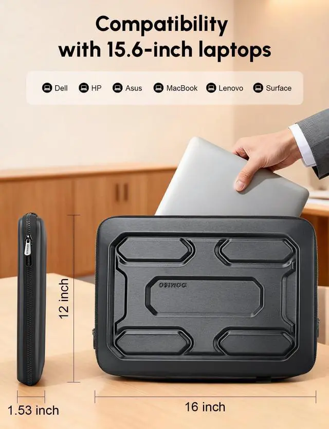Laptops: This sleeve is precisely engineered with external dimensions of 16×12× 1.53 and internal dimensions of 15.5 × 11.5 × 0.79 giving a snug fit for 15.6 laptops from MacBook HP and more. No sliding no bumpingjust secure protection. Designed for professionals who value sleek style and perfect compatibility for their premium devices. 3 Ways to