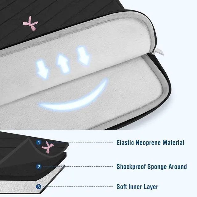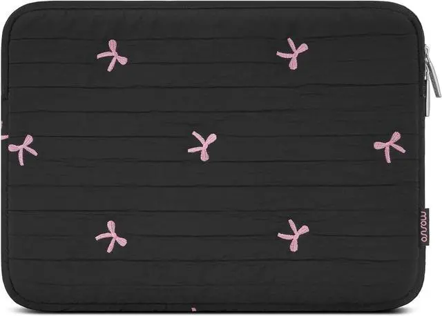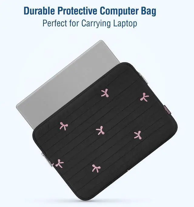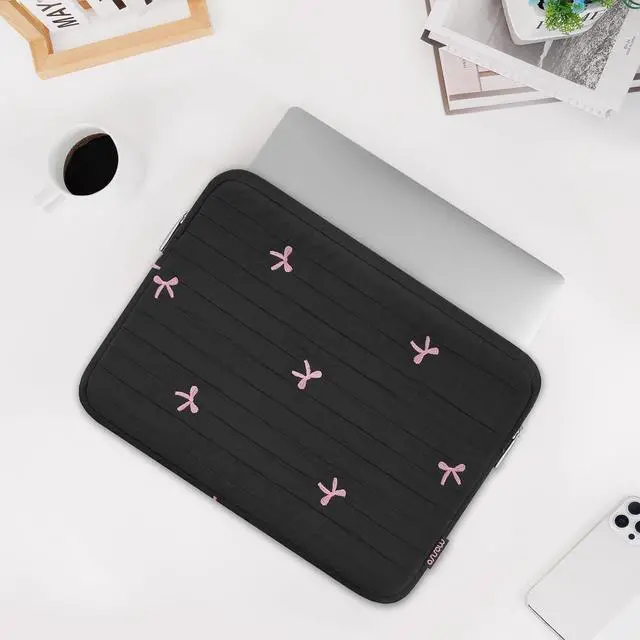 External dimensions: 13.58 x 10.23 x 0.78 inches (L x W x H). Made with striped quilted puffy polyester material with surface embroidered bow top opening zippers gliding smoothly and allow convenient access to your device. Slim and lightweight does not bulk your device up and can easily slide into your briefcase backpack or other bag. Features a polyester foam padding layer and fluffy fleece fabric lining for bump and shock absorption and protection of your device against bump shock and accidental scratches. This protective carrying sleeve case cover bag is ideal for you to take your laptop out and perfect for working traveling daily use and business travel. Compatible with MacBook Air 13 13.3 13.6 M4 A3240 M3 A3113 M2 A2681 M1 A2337 A2179 A1932 A1369 A1466 2010-2025 compatible with MacBook Pro 14 2025-2021 M5 M4 M3 M2 M1 A3434 A3112 A3185 A3401 A2918 A2992 A2779 A2442 compatible with MacBook Pro 13 2008-2025 M2 A2338 M1 A2251 A2289 A2159 A1989 A1708 A1706 A1425 A1502 A1278; Compatible with Surface Laptop 13.8 /Surface Book 3/2/1 13.5 /Surface Laptop 4/3/2/1 13.5; Compatible with XPS/Latitude 13; Compatible with HP Elitebook/Spectre/Envy/Stream 13.