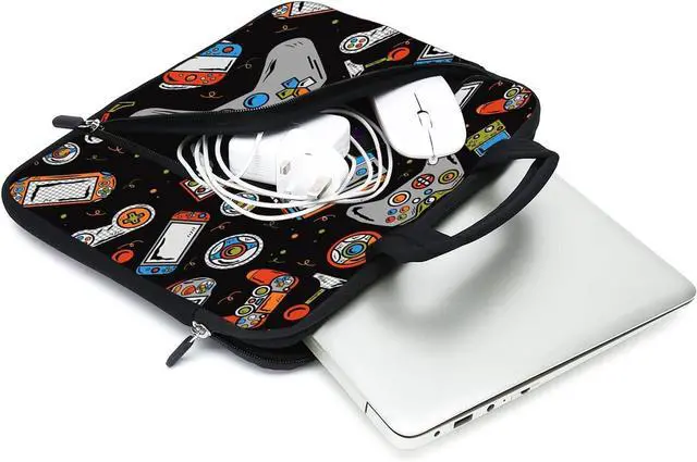 MATERIAL: 100% brand new neoprene bag high quality printing on both side of the sleeve with handle soft inner external pocket for mouse power adapter usb etc.