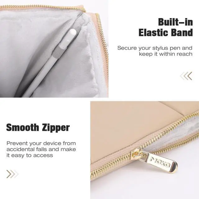 The non-woven fabric and super soft lining help safeguard the screen and body against scratches. Quilting Stitching - Made with quilting stitching for added sturdiness and durability this stylish tablet bag is perfect for girls of all ages. Smooth Zipper - Provides the superior zippers to keep your device safe and secure in the sleeve and ensure hassle-free opening and closing. Portable and Lightweight - Provide lightweight protection and accommodation for tablets up to 9-11 inches without tacking on excess and surely unwanted bulk. There is a elastic band to hold your tablet pen which is more convenient.