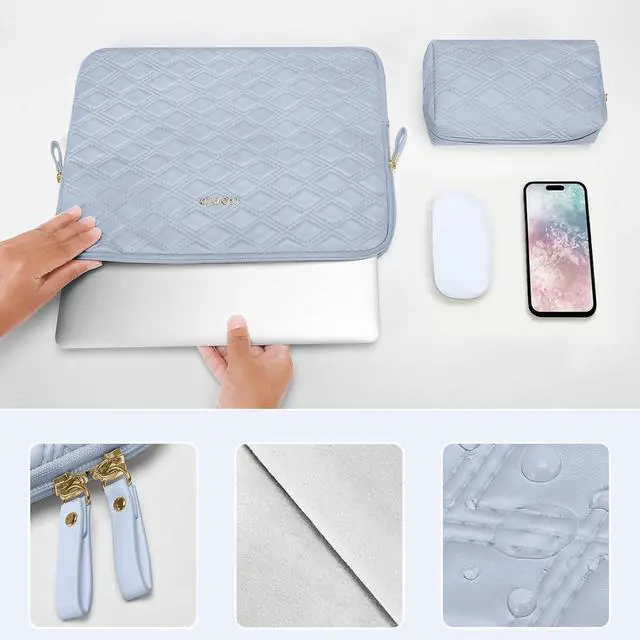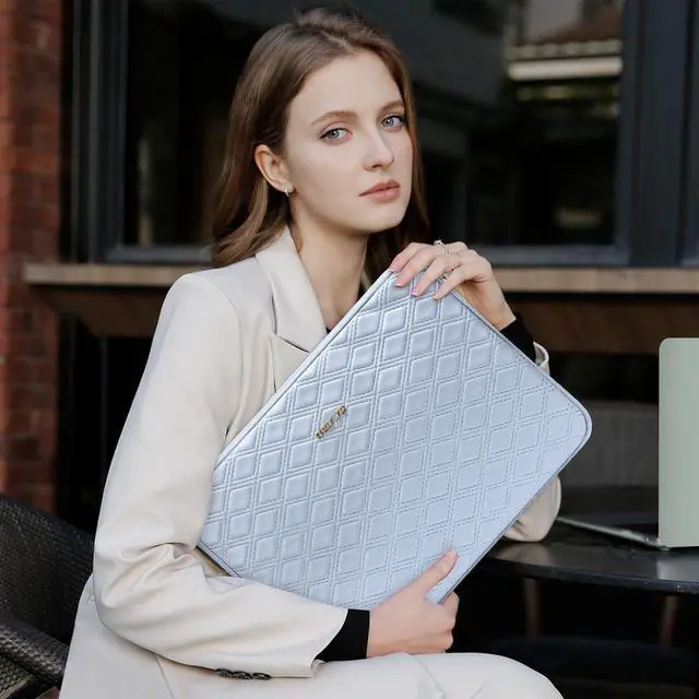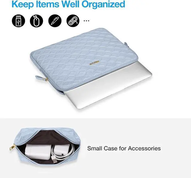 The internal horizontal pocket dimensions: 12.79 x 9.25 inches (L x W). The additional small pouch bag dimensions: 6.89 x 3.94 x 2.36 inches (L x W x H). Made of waterproof rhombus PU leather material. One compartment is designed for different use of accessories such as books note paper and pencil or any other stuff with possibility to scratch your laptop. Additional small storage pouch bag for you to keep laptop mouse and earphone well organized. Same color as the big sleeve bag harmony and stylish. This durable protective carrying sleeve case cover bag with small pouch is ideal for you to take your laptop out. Slim and lightweight; does not bulk your laptop up and can easily slide into your briefcase backpack or other bag. Top opening zippers on the sleeve glides smoothly and allows convenient access to your laptop computer. The bag is perfect for working traveling daily use and business travel. Compatible with MacBook Air 13 13.6 inch with Retina Display Touch ID 2025-2018 (M3 A3113/M2 A2681/M1 A2337/A2179/A1932) compatible with MacBook Pro 13 inch 2025-2016 (M2 M1 A2338/A2289/A2251/A2159/A1989/A1706/A1708); Compatible with Surface Pro 11/10/9/8/X 13 inch Compatible with iPad Pro 12.9 inch (1st/2nd/3rd/4th/5th/6th Gen) 2015-2022; Compatible with XPS/Latitude 13; Compatible with HP Pavilion 13; Compatible with Yoga 13.3; Compatible with MateBook 13/X 13/X Pro 13.9.