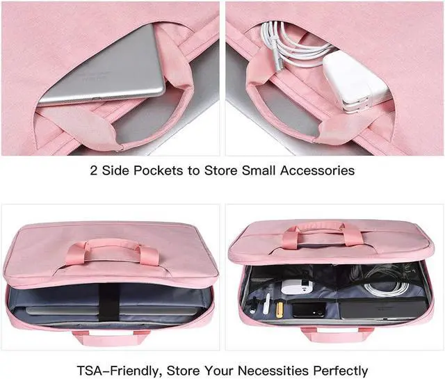 MULTI ORGANIZER DESIGN: The 11.6 - 12.9 Inch laptop sleeve case bag has one main compartment perfectly for 11.6 - 12.9 inch laptops or notebooks and another side has 4 mesh bags which can easily store your power adapters mouses tablets cables cell phones chargers headphones etc. and there are 3 small slots to hold your little gadgets such as Pencil surface pen or other stationery.