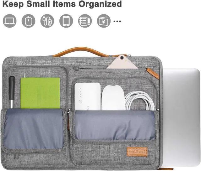 Vertical pocket dimensions: 3.74 x 6.69 inches (L x W). 360 degree all around protective reinforced interior edge briefcase carrying case bag protect your laptop from any accidental dropping. Extendable handle design makes it to carry your laptop around in comfort you can also tuck away the handle. Side opening zipper design avoid accidental dropping of your laptop while carrying. 4 front zipper pockets provide enough space to keep mouse earphone pens and notepads offering added convenience. The laptop sleeve with organizer pockets outer polyester fabric of the case enable you to carry your laptop / notebook / Ultrabook computer in a uniquely sleek style. Features a polyester foam padding layer and fluffy cushion for bump and shock absorption and protection of your device against dust dirt bump shock and accidental scratches. Considerate design is the back trolley suitcase belt for ease use during business trip. It is really convenient for your happy journey to any where. Slim and lightweight; does not bulk your laptop up and can easily slide into your briefcase backpack or other bag. This protective carrying sleeve case cover bag with handle and pockets is ideal for you to take your laptop out.