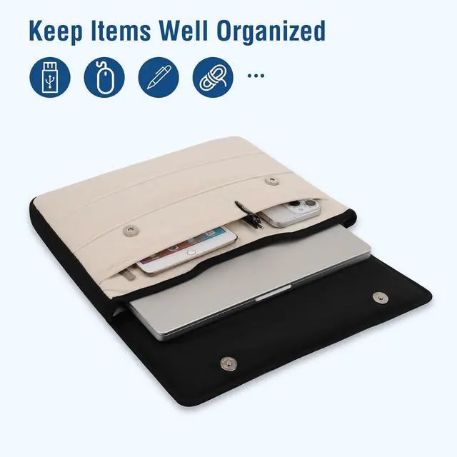 & loop dimensions: 13.77 x 7.08 inches (L x W). Made of horizontal rectangle quilted polyester material features a polyester foam padding layer. Protect your laptop from bump shock and accidental scratches. You can use it as laptop sleeve bag or a laptop handbag the way you like. The additional pockets at the front & back provides enough space to store mice headphones pens and notebooks increasing convenience. Slim and lightweight; does not bulk your laptop up and can easily slide into your briefcase backpack or other bag. Envelope flap design with button closure simplifies your process and secures your device. The bag is perfect for working traveling daily use and business travel. Compatible with MacBook Pro 14 inch 2025-2021 M4 A3112 A3185 A3401 M3 A2918 A2992 M2 A2779 M1 A2442 compatible with MacBook Air 13 A1369 A1466 2010-2017 compatible with MacBook Pro 13 A1425 A1502 A1278 2008-2015; Compatible with Surface Book 3/2/1 13.5 compatible with Surface Laptop 13.8 inch 2024 Surface Laptop 4/3/2/1 13.5; Compatible with Latitude 14; Compatible with HP Elitebook 13.3 /Spectre X360 13.3 /Envy 13/Stream 13/Stream 14/Pavilion 14; compatible with IdeaPad 13/14.