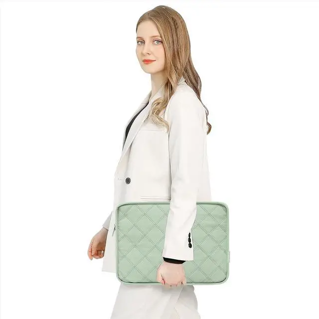 External dimension: 14.17 x 10.62 x 1.18 inches (L x W x H). The additional small pouch bag dimension: 7.28 x 4.13 x 1.18 inch (L x W x H). 360 degree all around protective reinforced interior edge briefcase carrying case bag protect your laptop from any accidental dropping. Features a polyester foam padding layer and fluffy cushion for bump and shock absorption and protection of your device against dust dirt bump shock and accidental scratches. Inner pockets provide enough space to keep pens & notebooks offering added convenience. Made with soft lightweight square quilted polyester material. Additional small storage pouch bag for you to keep laptop mouse and earphone well organized. Same color as the big sleeve bag harmony and stylish. Simple and exquisite square quilted appearance carrying sleeve case cover bag with inner pockets is ideal for you to take your laptop out. Top opening zippers on the sleeve glides smoothly and allows convenient access to your laptop computer. The bag is perfect for working traveling daily use and business travel. This unique square quilted design bag is perfect for women or men will give you a refreshing touch and allow you to carry your laptop in a unique way. Compatible with MacBook Air 13 13.3 13.6 M4 A3240 M3 A3113 M2 A2681 M1 A2337 A2179 A1932 A1369 A1466 2010-2025 compatible with MacBook Pro 14 2025-2021 M5 M4 M3 M2 M1 A3434 A3112 A3185 A3401 A2918 A2992 A2779 A2442 compatible with MacBook Pro 13 2008-2025 M2 A2338 M1 A2251 A2289 A2159 A1989 A1708 A1706 A1425 A1502 A1278; Compatible with Surface Laptop 13.8 /Surface Book 3/2/1 13.5 /Surface Laptop 4/3/2/1 13.5; Compatible with XPS/Latitude 13; Compatible with HP Elitebook/Spectre/Envy/Stream 13.