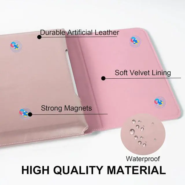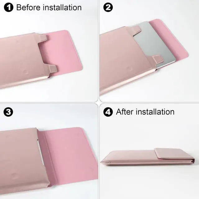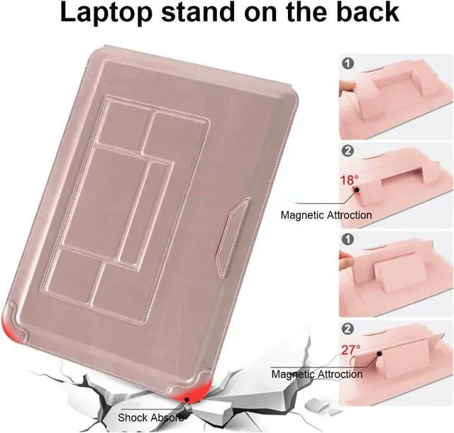 High-quality synthetic leather and soft microfiber interior which can effectively protect the laptop from scratches stain and dirt; the leather surface is very easy to clean. Innovative 3 in 1 Multi-functional design - This sleeve can be used as a laptop stand the flip pad can work as a portable mouse pad. It's more comfortable to watch movies typing and working. Foldable stand with 2 adjustable angles allows you to maintain the comfortable sitting posture and scientific perspective while facilitating laptop cooling. Slim and lightweight to take alone or slide it into your briefcase backpack or any other bag when you go to school work or travel; strong magnetic closure keeps your precious device securely inside without dropping out.