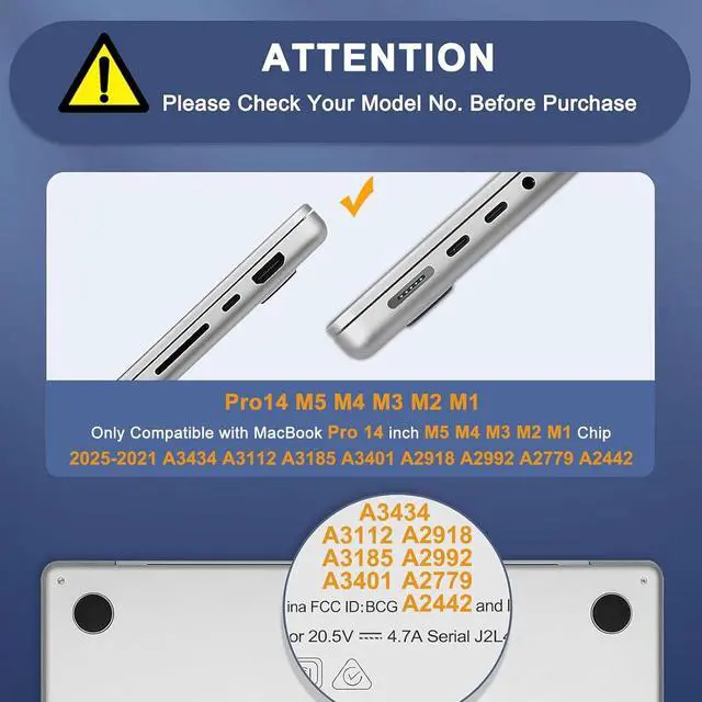 External Dimensions: 12.99 x 9.45 x 1.18 inches (L x W x H). Compatible with MacBook Pro 14 inch M5 A3434/ M4 A3112 A3185 A3401/ M3 A2918 A2992 / M2 A2779 / M1 A2442 Pro / Max with Liquid Retina XDR Display & Touch ID with dimension: 12.31 x 8.71 x 0.61 inch (2025 2024 2023 2022 2021 Released). Please kindly check the model number Axxxx on the back of the laptop before your purchase make sure you choose the exact same model number as the listing title stated A3434 orA3112 orA3185 orA3401 orA2918 or A2992 or A2779 or A2442. Made of waterproof PU leather material. Top opening zippers gliding smoothly and allows convenient access to your device. Unique protective design allows operating your laptop freely without removing the case. Soft PU leather case cover with shock-absorbing features will protect your laptop from scrapes and scratches. Slim and lightweight can easily slide into your briefcase backpack or other bag. This portable protective cover is convenient for you to carry your laptop out when go to work or to travel.