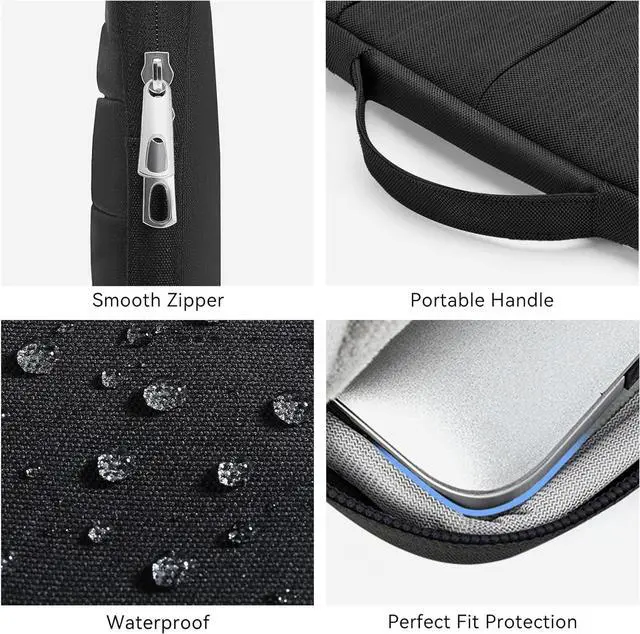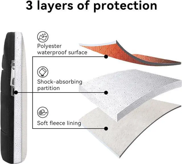 Compatible WithDesigned for 13.6 inch MacBook Air M4 Chip 2025 compatible with 14-inch New MacBook Pro M5/M4/M3/M2/M1 Pro/Max A3112 A3401 A3185 A2992 A2918 A2779 A2442 2025-2021 compatible with MacBook Air 13.6 inch with M3/M2/M1 Chip compatible with MacBook Pro 13 compatible with 12.9 iPad Pro3-Layer Enhanced Durability ProtectionWater-resistant outer shell + shock-absorbing thickened sponge + ultra-soft microfiber lining work together to block scratches spills and impacts. Ideal for daily commute and travelPortable DesignElaborate side retractable handle design + ultra-lightweight build ( 0.56 lbs) reduces shoulder fatigue during long commutes. Perfect for coffee shop hopping airport dashes or campus transitions your MacBook stays secure yet instantly accessibleExtra Storage SpaceIn addition to the central space designed for a laptop 3 front pocket and one large back pocket are specially designed for you to storage power adapter mouse ipad or other essentials.