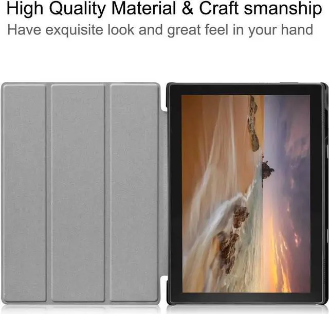 Features: Compatible with Lenovo Tab E10 10.1 inch TB-X104F Case Tablet 2018 Released Slim lightweight durable protective hardback with Premium Synthetic Leather with Soft scratch-free microfiber interior combine with rigid poly-carbonate back shell brings you a solid case. Specifically-cut for access to all buttons and ports, Prevents scratches and damages to your Lenovo E10 Tablet 10.1 Inches Folding cover transforms the case to be a stand with two comfortable viewing angles (Horizontal View Only); watching/view angle and typing angle.