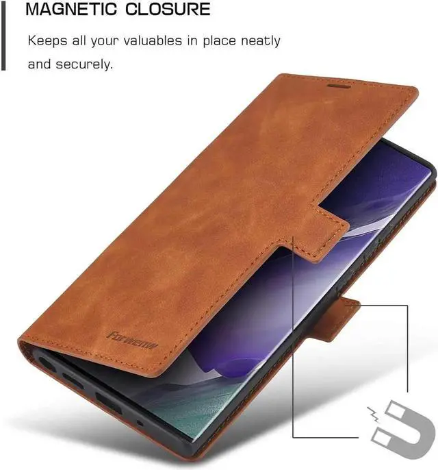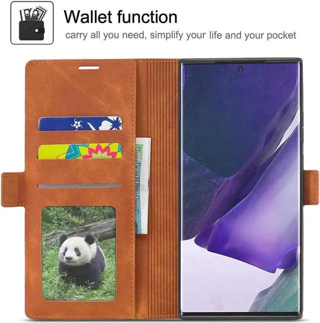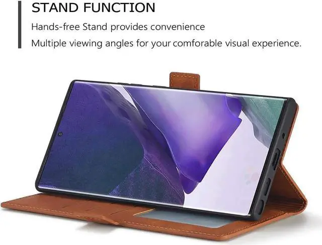 Features: COMPATIBLE MODEL - Specially designed for Samsung Galaxy Note 20 Utra 5G. Please choose the right size of your phone before purchase, pictures are only for reference PREMIUM MATERIALS - Made from high quality PU leather and soft TPU inner shell, providing a high quality experience and comfortable touch feeling. Reinforced stitching and 100% handmade craftsmanship makes it even more durable and shockproof. 360 DEGREE PROTECTION - Covers all sides and corners of your phone, absorbing the impact of the falling perfectly. With Hidden Magnetic Adsorption the case closes securely to protect the screen from scratching or other damage. MULTI FUNCTION - The wallet case with light, thin and classic Design includes 2 Card Holder, 1 clear ID / Family Photo Windows and 1 cash pocket that you can carry around your ID, credit cards and cash. Stand function perfects for video chatting and movie watching PRECISE CUT-OUTS - Precise cut out for all features, speaker, charging port and camera. The case does not impede the use of any of the function that you don't need to remove it when using your phone. Design - With a simple color designing looks retro and vintage, which also makes your phone classic and stylish.