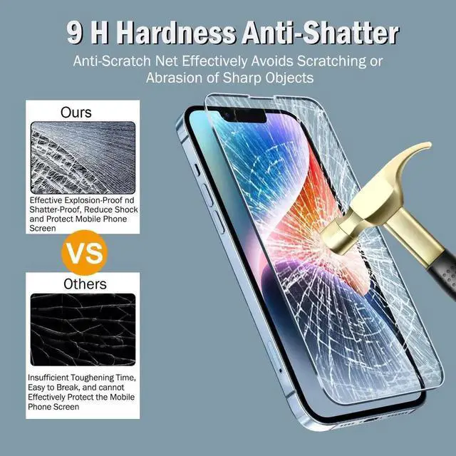 Anti-Scratch & Impact Protection --- Screen Protector for iPhone 14 pro max using 9H hardness Strengthening Tempered Glass that was precisely engineered for impact & scratch protection. Effectively protect your phone screen and camera lens well from scratches, impacts and daily damage