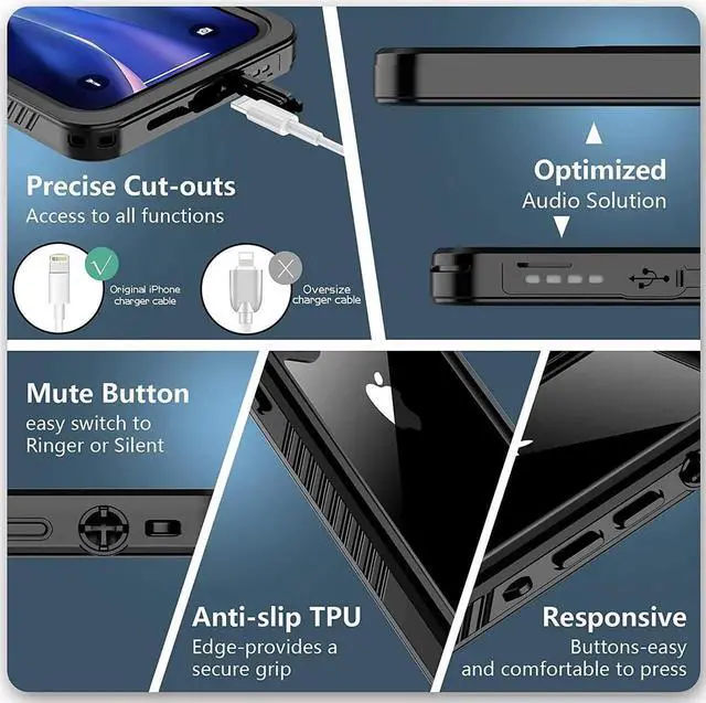 Support Wireless Charging: 100% compatible with wireless charging without taking off your iPhone Waterproof Case. Simply place your phone on the non-slip charging surface for wirelessly fast charging.