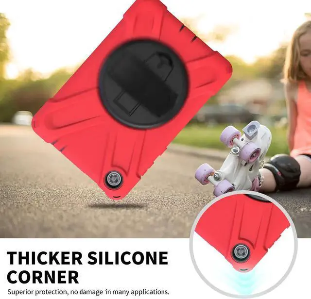 CHILDPROOF, HEAVY DUTY, DROP PROOF, RUGGED TABLET PROTECTOR - Durable rubberized silicon body offers ultimate shockproof protection, hard plastic shell frame protects your tablet from being scratching. Innovative Design, thicken four corners, protect your tablet even if it falls from the second floor. The Tablet Case provides a perfect protection against accidental drops, scratches, dust, bumps and shock