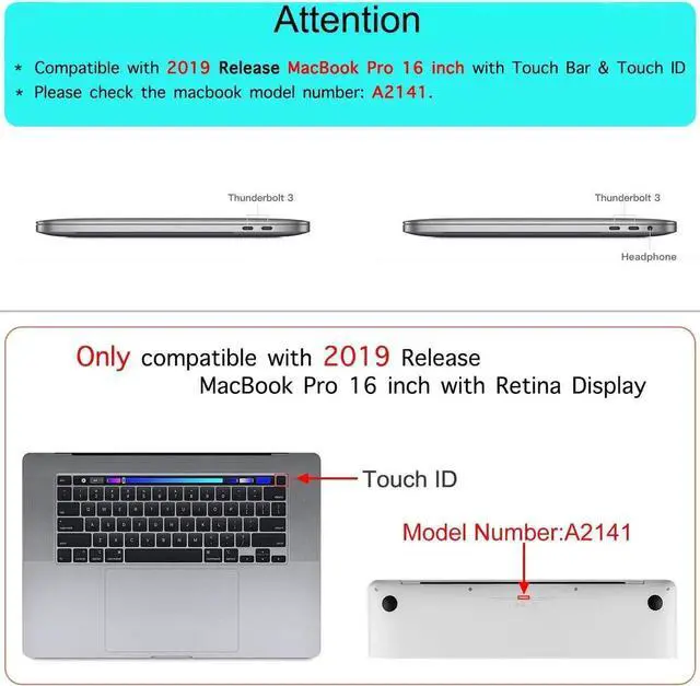 Only Compatible with MacBook Pro 16-inch with Touch Bar and Touch ID Model A2141 part number MVVL2CH/A 2019/2020-Now