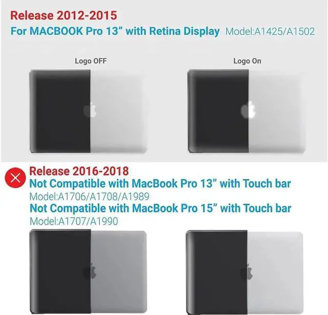 Compatibility: Compatible with MacBook Pro 13 inch with Retina Display Model Number: A1502 / A1425, Release 2015 / 2014 / 2013 / 2012 --- MF843LL/A , MF839LL/A , MF840LL/A , MF841LL/A , MGXD2LL/A , MGX72LL/A , MGX82LL/A , MGX92LL/A , ME864LL/A , ME865LL/A , ME866LL/A MD212LL/A, MD213LL/A, ME662LL/A, ME664LL/A MD213LL/A, ME662LL/A, ME664LL/A