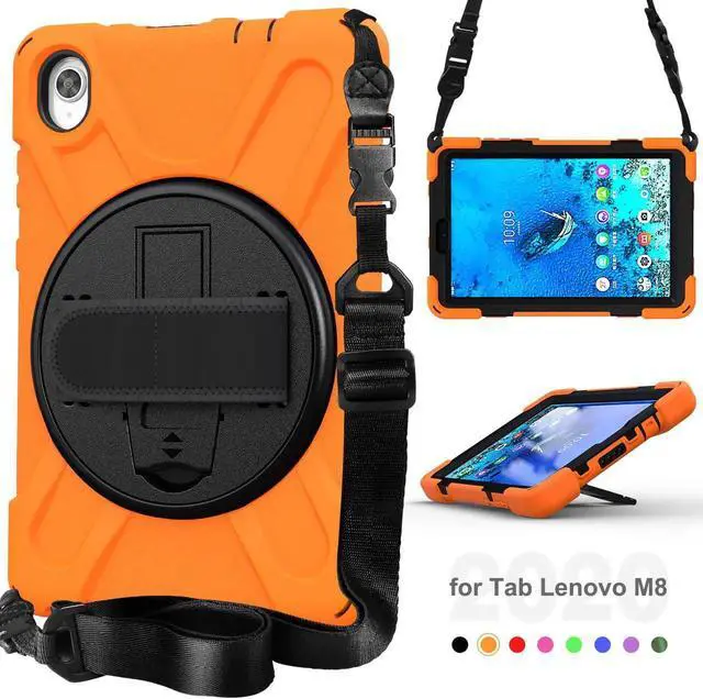 numer: TB-8705F/TB-8705N, WILL NOT FIT ANY OTHER TABLETS Built-in Kickstand is 360 degree rotating, you can adjust your Tab M8 2020 to whatever angle you want, perfect for watching videos and chatting Adjustable velcor hand strap allows big hand and small hand, perfect for kids and adults. Adjustable and detachable Shoulder belt is very convenience, safe and fashion you can carry tab M8 tablet with should belt wherever you want Full Body Protection-With 3 layers design silicone outer frame and 2 pieces Combination of hard reinforced inner shell, this Lenovo Tab M8 case 2020 is shockproof and help protector your tablet. Perfect for adults and kids High Protective Rugged Case-- Precise cut allows full access to all ports, functions and buttons. Excellent for screen protection, camera protection volume protection