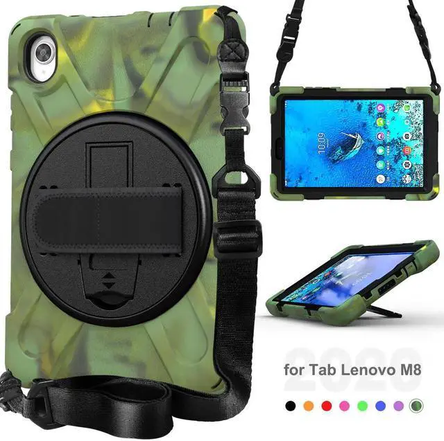 numer: TB-8705F/TB-8705N, WILL NOT FIT ANY OTHER TABLETS Built-in Kickstand is 360 degree rotating, you can adjust your Tab M8 2020 to whatever angle you want, perfect for watching videos and chatting Adjustable velcor hand strap allows big hand and small hand, perfect for kids and adults. Adjustable and detachable Shoulder belt is very convenience, safe and fashion you can carry tab M8 tablet with should belt wherever you want Full Body Protection-With 3 layers design silicone outer frame and 2 pieces Combination of hard reinforced inner shell, this Lenovo Tab M8 case 2020 is shockproof and help protector your tablet. Perfect for adults and kids High Protective Rugged Case-- Precise cut allows full access to all ports, functions and buttons. Excellent for screen protection, camera protection volume protection