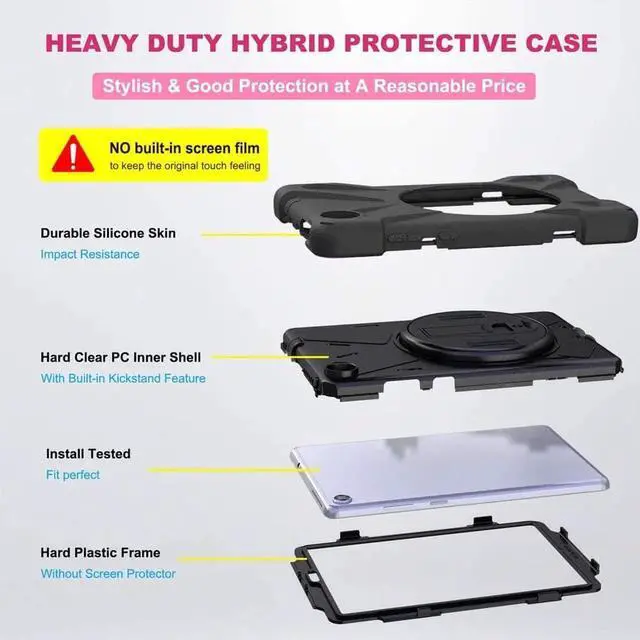 number: TB-8705F/TB-8705N Portable shoulder Strap By attaching strap to any two holes, the tablet can be carried vertically or horizontally. Like a bag, hang in neck or shoulder to free your hand and avoid dropping. According to any need, remove the shoulder strap or the length can be easily adjustable. Adjustable Hand Strap 360 Degree rotating adjustable hand-strap can realize convenient one-handed operation experience for you. Rotate along with the turntable in the middle, you can find the perfect orientation. Both adults and children, according to any hand size, the tightness of the strap can be adjustable to hold your Lenovo Tab M8 tablet 2020 comfortably. 360 Degree Rotatable Kickstand 360 Degree Built-in Kickstand can make you hand free. Support multi-angle usage and convenient standing position for watching video/ working/ studying/ video chat/ typing.