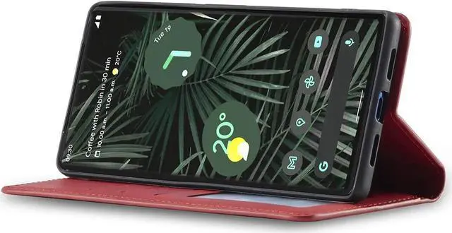 Case for Google Pixel 6 Pro 5G 6.71 inch Premium PU Leather Cover with Card Holder Kickstand Shockproof Flip Wallet Cover Red