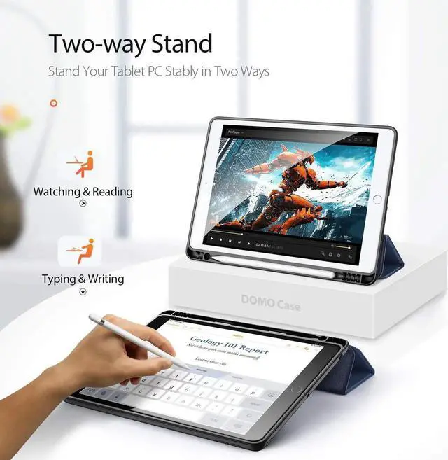 Package Include: 1 x PU Leather Case for iPad 8th Gen 2020 / iPad 7th Gen 2019 10.2 . PREMIUM MATERIALS Made of high-quality PU leather exterior with color-matching microfiber interior. FULL PROTECTION Provide full body protection against shocks, drops and scratches. PENCIL HOLDER Built-in pencil holder and stand to provide you better user experience (only for Apple Pencil). FAST HEAT DISSIPATION Special bottom groove design to improve heat dissipation for better tablet functioning. PRECISE CUTOUTS Perfect cutouts for camera, speaker, micphone, and all ports such as charging, power, volume, etc. ANTI-FINGERPRINT Anti-fingerprint exterior material to make sure the case looks like new one all the time.