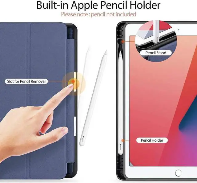 Features: Compatibility --- Designed for iPad 8th Gen 2020 / iPad 7th Gen 2019 10.2 inch (A2197 / A2198 / A2200 / A2232). It is Not compatible with any other devices. Please check back bottom of your iPad to find the model number. Pencil Holder --- Easy to put the Apple Pencil in and out (Pencil is NOT included). Auto Sleep / Wake --- Magnetic smart cover supports auto wake & sleep function. Powerful magnet secures the case closure, easy to snap on and off. Stable Stand --- Dual stand mode for movie watching and keyboard typing. Full Protection --- Made of soft TPU back cover, premium PU leather exterior and color-matched microfiber lining. Provide full body protection against shocks, drops and scratches.