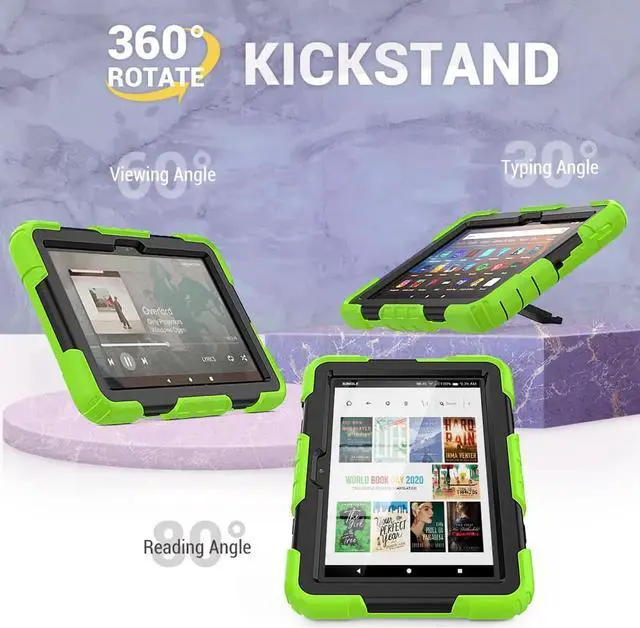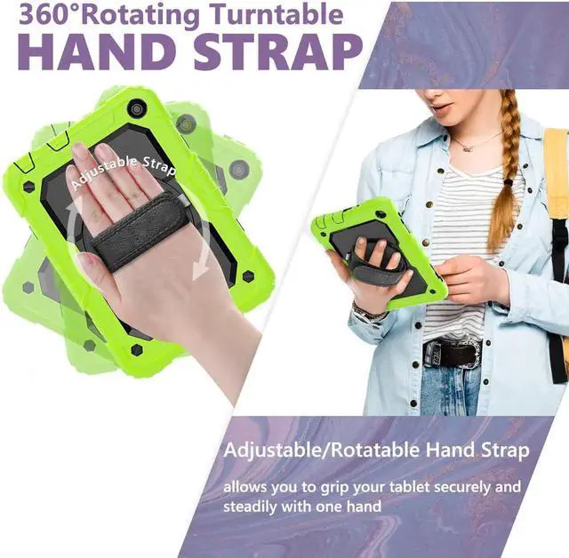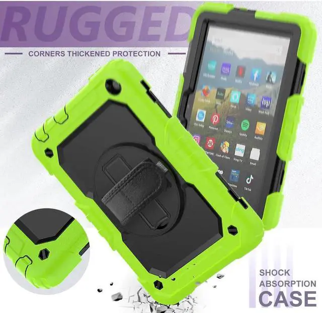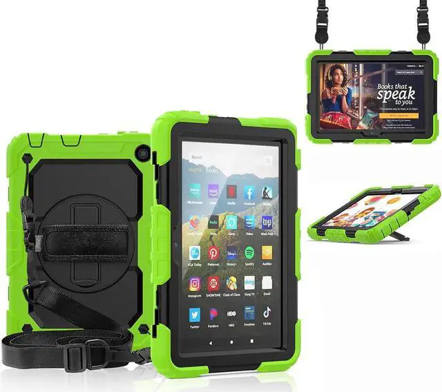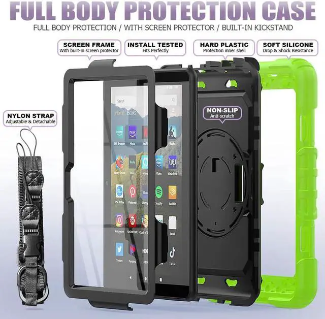 Features: [Compatibility] Special design for 10th Generation Amazon Kindle Fire HD 8 2020 and Fire HD 8 Plus 2020 Tablet, DO NOT FIT ANY OTHER MODEL [Full Body Protection with Screen Protector] 3-layer heavy duty bumper case, Combined with 1-layer flexible silicone and 2-layer hard PC linings as well as built-in screen protector, Providing full body protection of your tablet against accidental drops, Scratches, Shocks, Bumps and dirt. [360°Rotatable Kickstand & Hand Strap] 360°Rotatable Kickstand offers multi-angle stands for enjoying the most comfortable keyboard-typing and movie-viewing. The 360°Rotatable and Adjustable Hand Strap makes you hold or use your device easier in all directions. Also designed with a Pen Holder to grab your S Pen whenever you want, Easily to carry your S pen with your device (S Pen is NOT included). [Removable & Adjustable Shoulder Strap] Adjustable and removable shoulder strap can be attached to any two holes in the PC cover to carry your device vertically or horizontally like a messenger bag, You could even hang it behind the car seat or hang on wherever you want. Convenient for carrying your device when you at work, On trip or at outdoors.