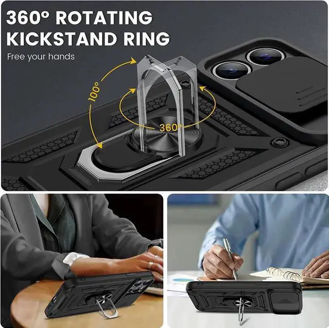 360°Rotating Kickstand --- The built-in metal ring is very stable and full 360°roration. This case for 13 Pro Max with kickstand helps you free your hands when watching videos. Built-in metal patch can easy to directly adsorbed your phone on the magnetic car mount holder.