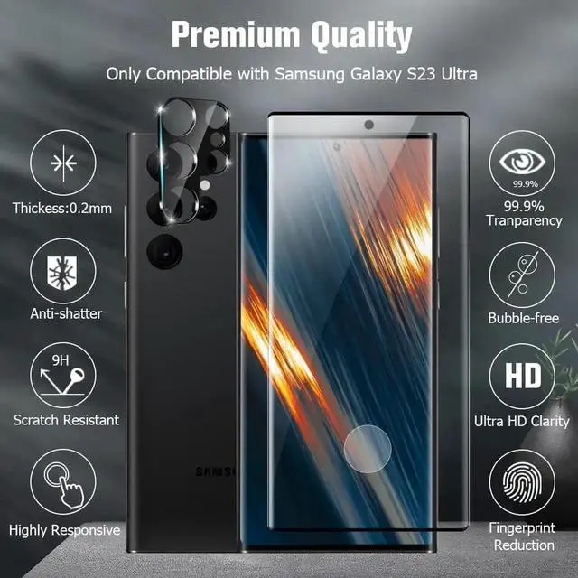 ![Alt view image 5 of 7 - [2+2 Pack] Galaxy S23 Ultra Screen Protector, 2 Pack Camera Lens Protector , Ultrasonic Fingerprint Support, 3D Curved,HD Clear 9H Tempered Glass Screen Protector, For Samsung Galaxy S23 Ultra 5G (6.8](https://c1.neweggimages.com/productimage/nb640/C0U0S25082007DC7Q81.jpg)