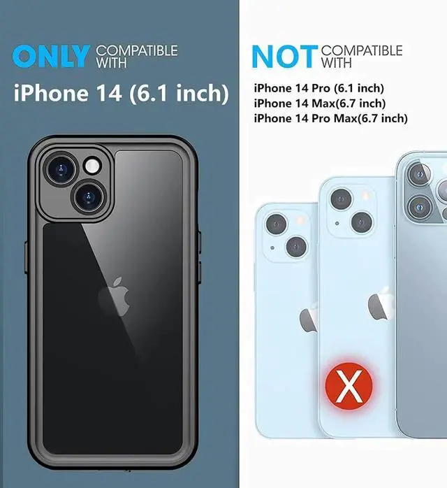 Compatibility: The Waterproof Case compatible with iPhone 14 5G 6.1 inch ONLY. Precise and smooth cutouts for buttons, camera and other ports. Easy to install. Warn Note : Please REMOVE the original phone film before install the phone case.