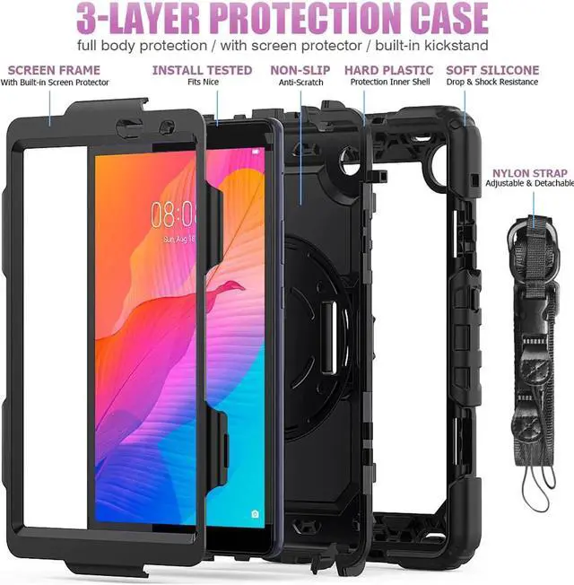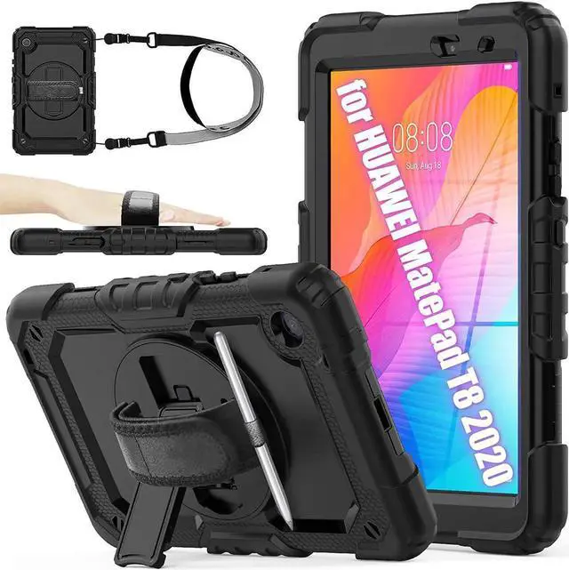 Soft Hand Strap & Portable Shoulder Strap & Rotating Stand: Provide the securest protection and more convenience when you play or work with MatePad T8 8.0 tablet. Hang it anywhere for your better entertainment, make your hands free. 360 Degree rotating Kickstand provides multi-angle viewing, with soft handle strap, easier to use your tablet in your outdoor travelling, working, gaming with kids.