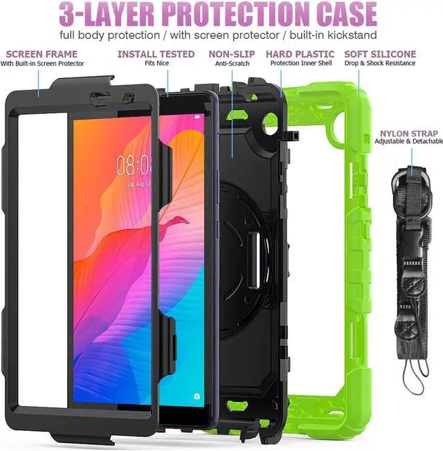 Soft Hand Strap & Portable Shoulder Strap & Rotating Stand: Provide the securest protection and more convenience when you play or work with MatePad T8 8.0 tablet. Hang it anywhere for your better entertainment, make your hands free. 360 Degree rotating Kickstand provides multi-angle viewing, with soft handle strap, easier to use your tablet in your outdoor travelling, working, gaming with kids.