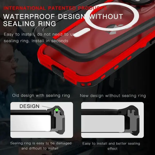 ![Alt view image 6 of 7 - for iPhone 15 Pro 6.1 inch Waterproof Case Magnetic, [Compatible with MagSafe][with Screen Protector][IP68 Underwater][15FT Military Dropproof][Dustproof] Phone Cover for iPhone 15 Pro 6.1" Red](https://c1.neweggimages.com/productimage/nb640/C0U0S2508200HQGPV0A.jpg)