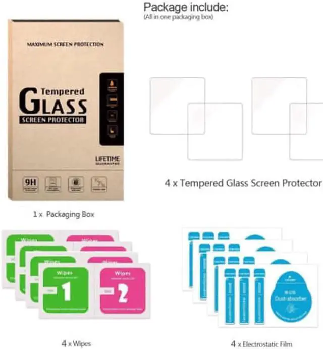 1 Retail package includes: 4pcs tempered glass screen protector for Fitbit Blaze,4 wet and dry Screen Cleaning Paper,4 Sticker.