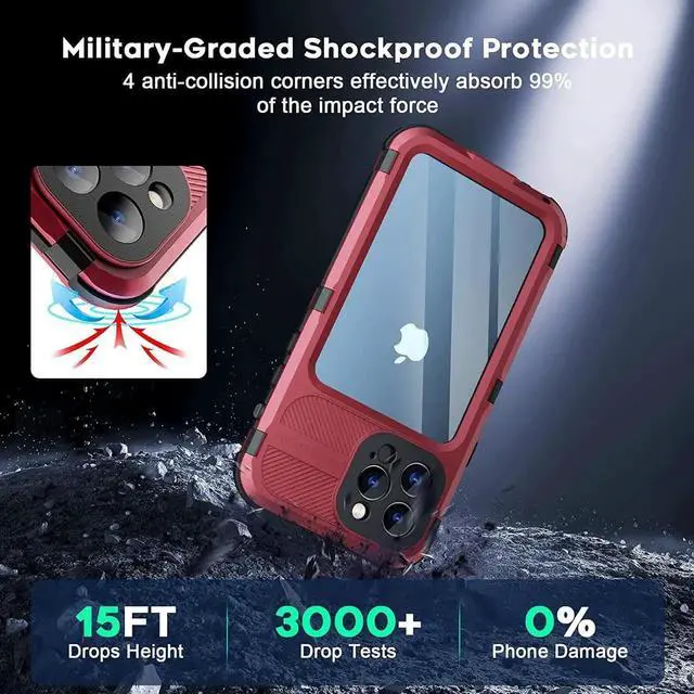 ![Alt view image 6 of 7 - iPhone 13 Pro Max 6.7 inch Waterproof Metal Case - Built-in [Screen Protector][15FT Military Grade Shockproof][IP68 Water Proof], Full Body Aluminum Protective Dropproof Cover Red](https://c1.neweggimages.com/productimage/nb640/C0U0S25082101V4Z4E9.jpg)