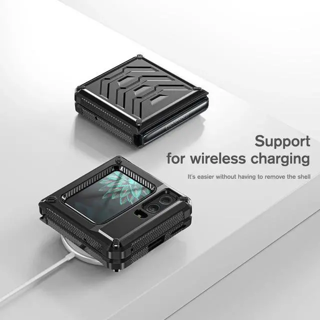 Wireless Charging Compatible: The rugged Motorola Moto Razr 2022 case is made of TPU+PC anti-drop material and its thickness do not affect the wireless charging ability and share battery.