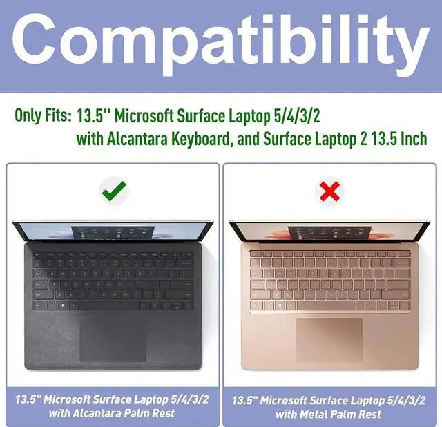 Only compatible with 13.5 inch Microsoft Surface Laptop 5 2022/ Laptop 4 2021 / Surface Laptop 3 2019 with Alcantara Palm Rest, and Surface Laptop 2 13.5 inch 2018. (Model Number:1769/1867/1958/1950). Not Compatible with Any Other Devices