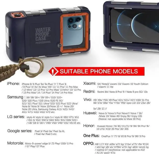 ![Alt view image 6 of 7 - Diving Phone Case, Underwater Photography Video Housings with Lanyard [50ft/15m], Snorkeling Waterproof Phone Case for iPhone 11/12/13 14 Series Samsung Galaxy S22/S21/S20 LG Motorola Google etc](https://c1.neweggimages.com/productimage/nb640/C0U0S25082103HPBQ7F.jpg)