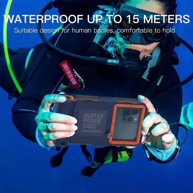 Professional Diving Shell:Tested to IP68 certifieddiving depth to 50 feet/ 15 meters for 30 minutes. Before diving, we recommend turning on your cell phone camera to make it convenient to take pictures and record videos. Be sure your phone is fully charged