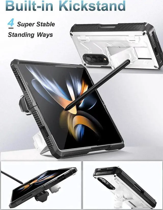 Built-in Kickstand for Hands-free Convenience: The galaxy z fold 4 case with hidden kickstand, unfold and it will bring 4 standing ways and the most comfortable viewing angles to free your hands when you are reading, watching the video, making video calls or notes, painting, etc.