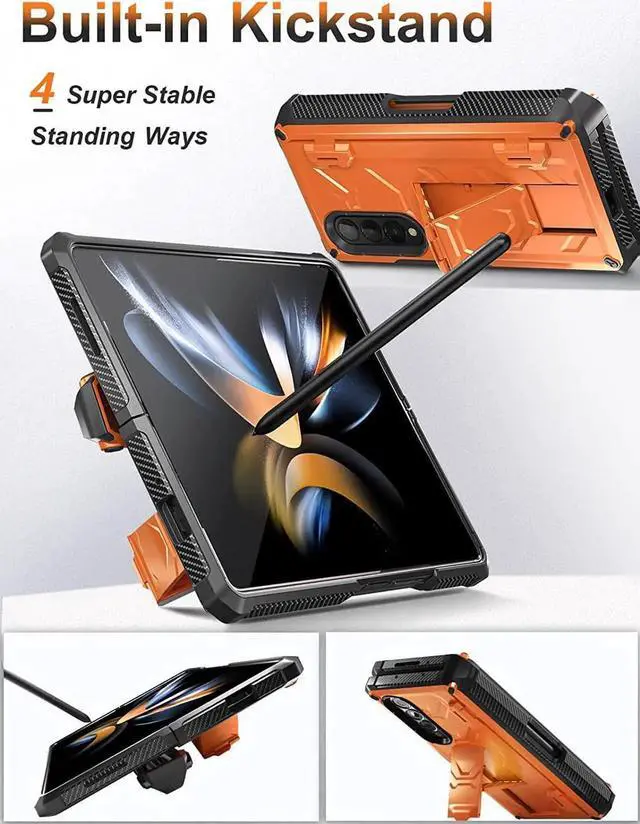 Built-in Kickstand for Hands-free Convenience: The galaxy z fold 4 case with hidden kickstand, unfold and it will bring 4 standing ways and the most comfortable viewing angles to free your hands when you are reading, watching the video, making video calls or notes, painting, etc.