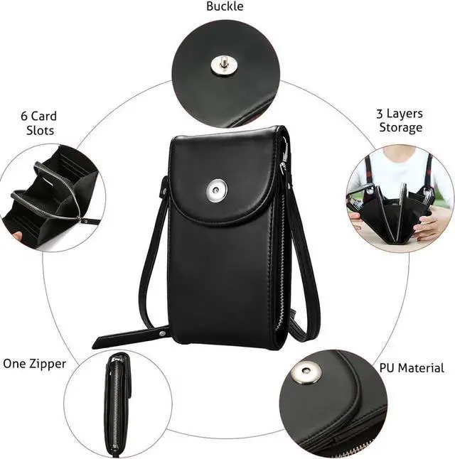 3 LAYERS STORAGE : 3 Compartments Inner Pocket, it has a 6 Credit Card Slots, 5.5'' Phone Zipper Place, Cash Place. You can organize your staffs well with this wallet bag.
