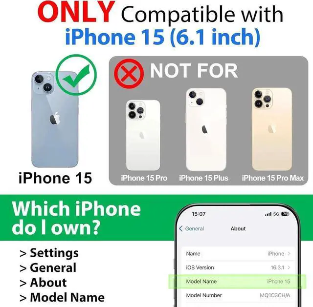 Compatibility: ONLY Compatible with iPhone 15 6.1 inch 2023.Please check your phone model before order! Any of your problems will be satisfactorily resolved.
