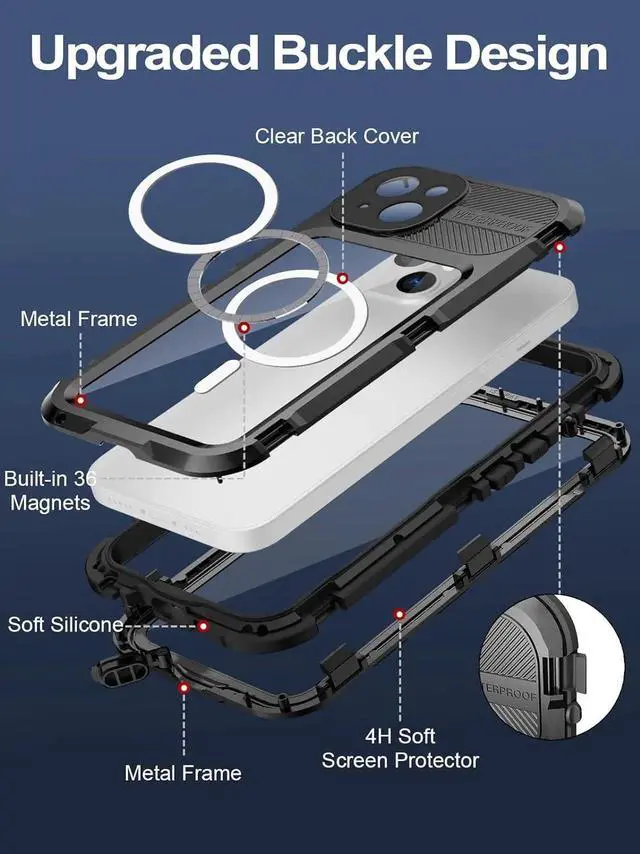 ![Main image of Waterproof Case for iPhone 15 6.1 inch, Built-in [Screen Protector] [IP68 Water Proof] [14FT Military Grade Shockproof], Metal Full Body Aluminum Protective Drop Protection Cover for iPhone 15 6.1"](https://c1.neweggimages.com/productimage/nb640/C0U0S250821057OO0B9.jpg)